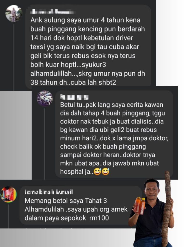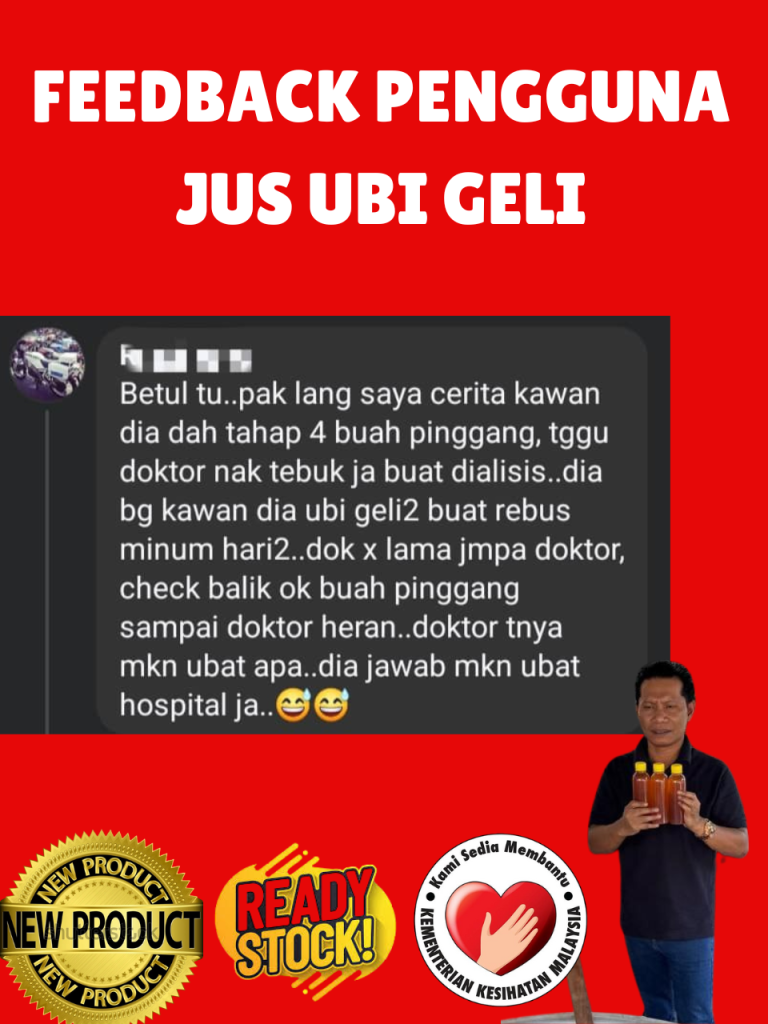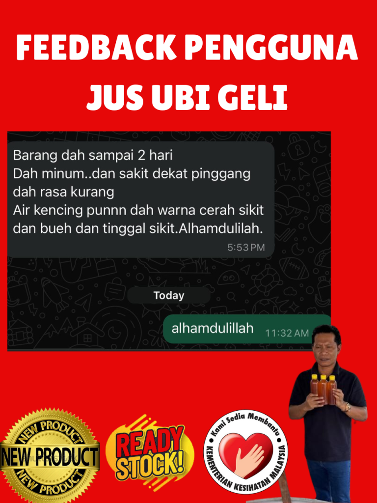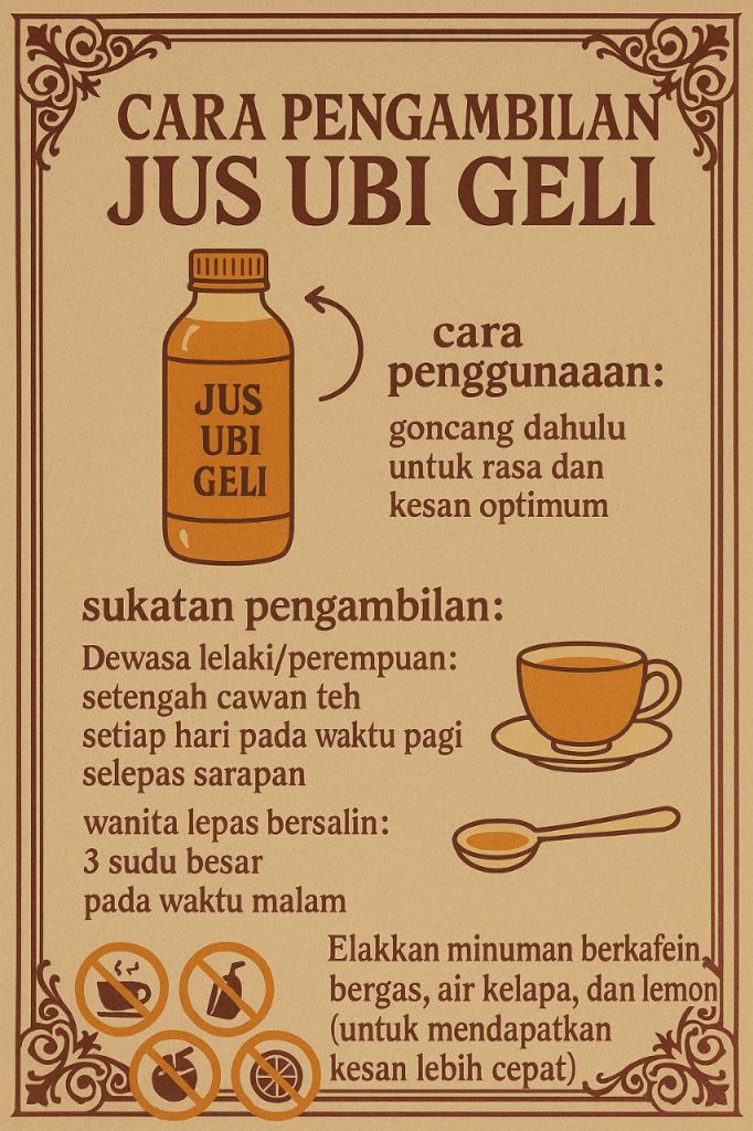 “Jus Ubi Geli bukan saja dibuat dari herba semula jadi, malah telah diruqyah oleh Sheikh Tormizi. Gabungan ikhtiar alam dan doa – untuk kesembuhan zahir dan batin.”